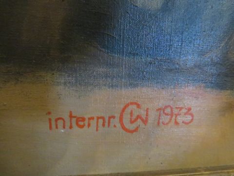 INTERN C.W. (1973). A PAIR OF OIL ON CANVAS PAINTINGS DEPICTING FIGURES, GILT FRAMED, 75 X 49 cm (PAIR)