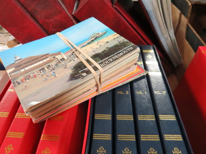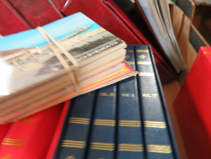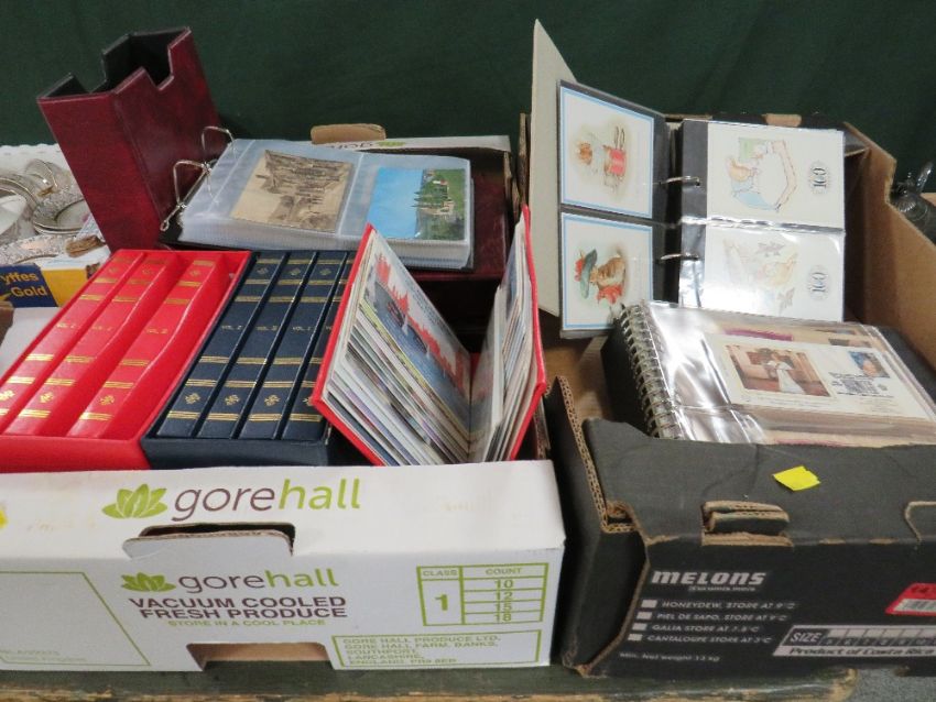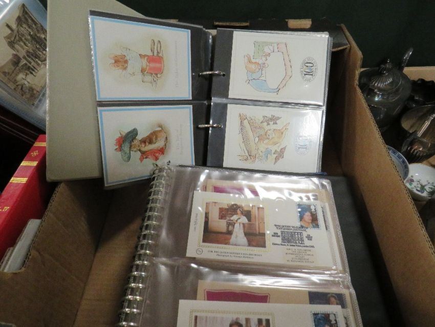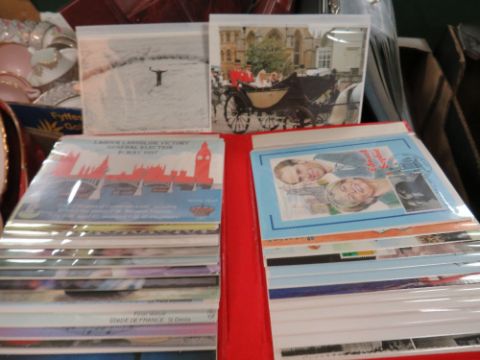 TWO TRAYS OF ASSORTED POSTCARDS AND FIRST DAY COVERS ETC