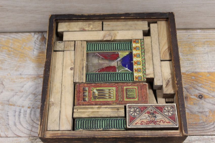A VINTAGE BOX OF CHILDRENS BUILDING BLOCKS