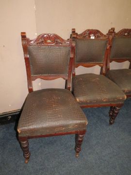 A SET OF FOUR EDWARDIAN CARVED MAHOGANY DINING CHAIRS