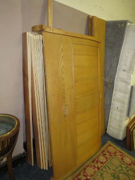 A LIGHT OAK MODERN SLEIGH BED - W 162 CM