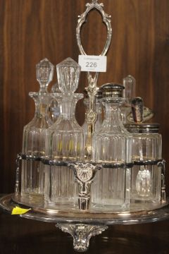 A ANTIQUE SILVER PLATED SEVEN BOTTLE CRUET