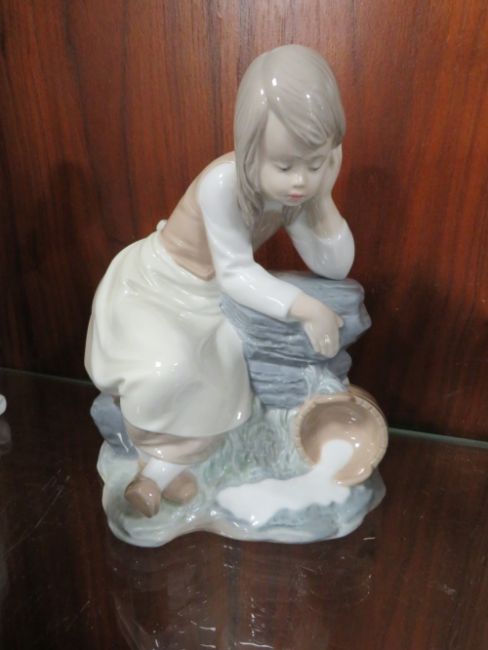 FOUR ASSORTED NAO FIGURES TO INCLUDE A GIRL WITH A PAIL OF SPILT MILK
