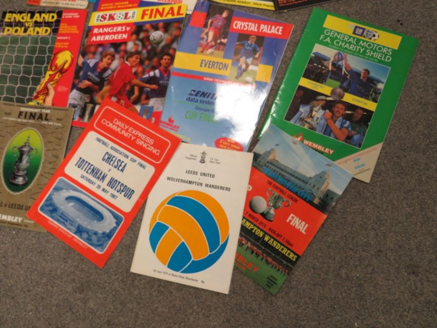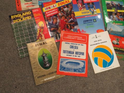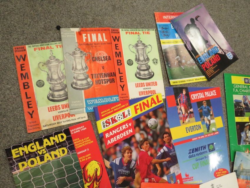 A FOLDER OF FA CUP FINAL PROGRAMMES, ENGLAND PROGRAMMES ETC TO INCLUDE LEEDS UNITED v LIVERPOOL 1965
