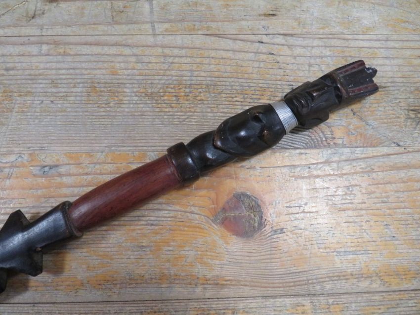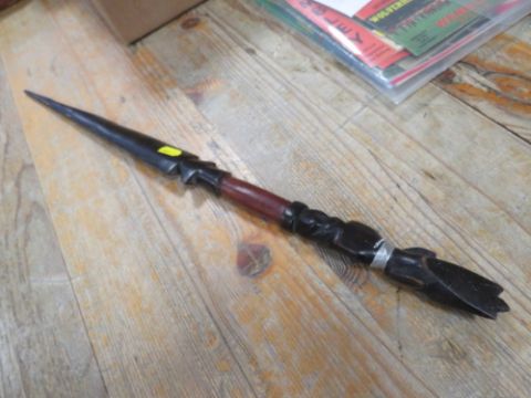 AN CARVED WOODEN AFRICAN TRIBAL SPEAR