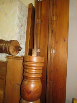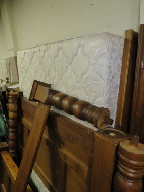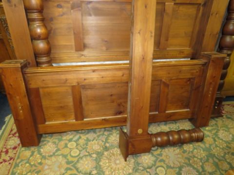 A LARGE MODERN PINE FOUR POSTER BED WITH MATTRESS
