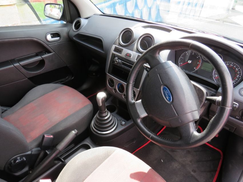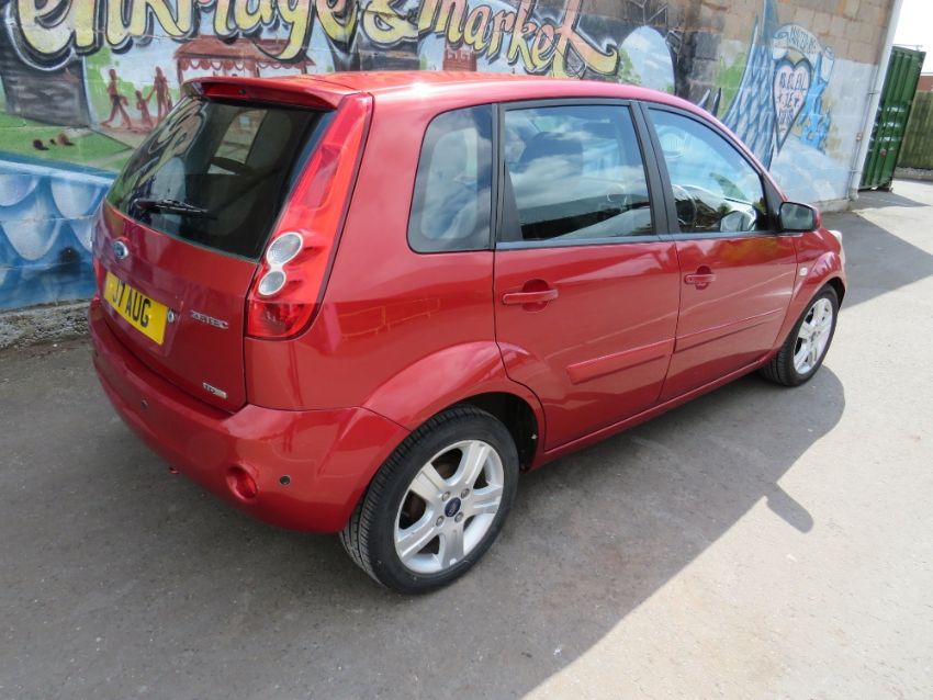 A 2008 RED FORD FIESTA 'J7 AUG', 1.4L DIESEL - LOG BOOK, TWO KEYS, LOCKING WHEEL NUT KEY, MOT UNTIL 18 APRIL 2024, APPROXIMATE MILEAGE 124,400