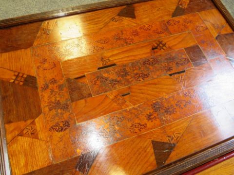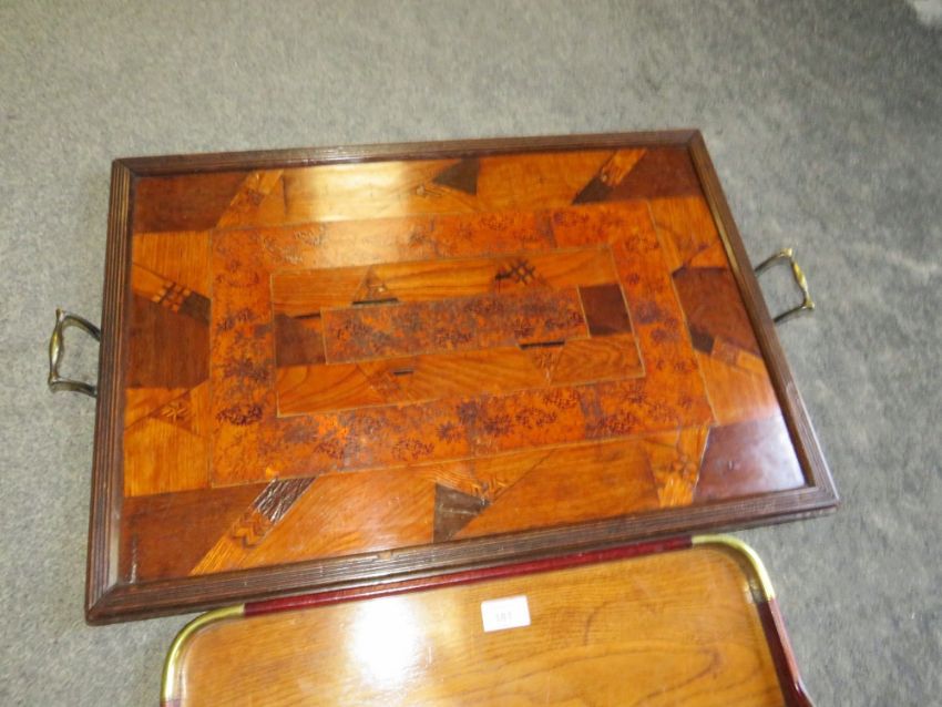 TWO EDWARDIAN WOODEN TRAYS - ONE HAVING INLAID MARQUETRY DETAIL