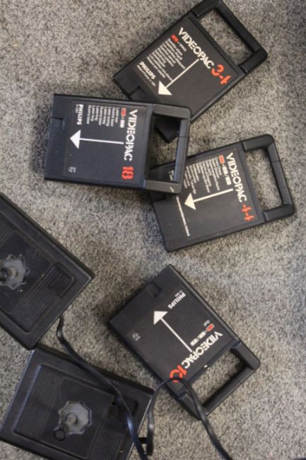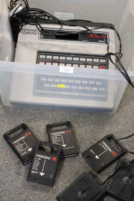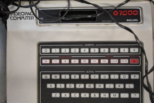A VINTAGE PHILLIPS G7000 VIDEOPAC COMPUTER WITH CONTROLLER AND SELECTION OF GAMES - NOT TESTED