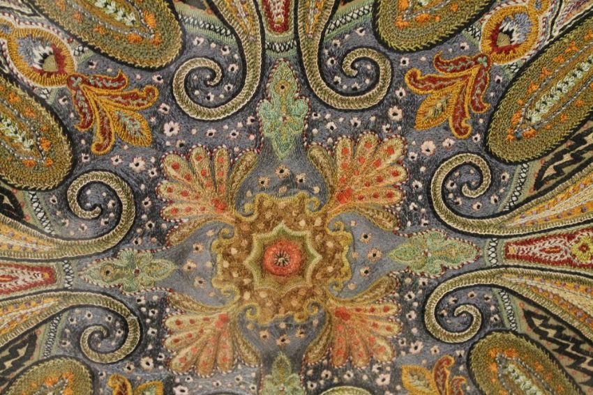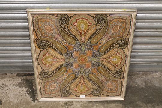 A LARGE FRAMED AND GLAZED HEAVILY EMBROIDERED PANEL