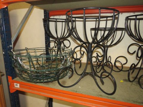 EIGHT WROUGHT IRON FLOWER BASKETS TOGETHER WITH TWO HANGING BASKETS