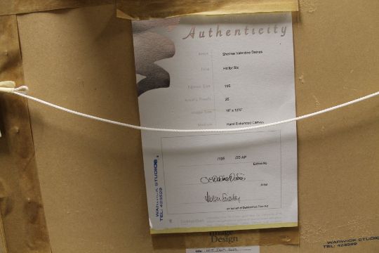 A FRAMED LIMITED EDITION 'ENHANCED CANVAS' BY SHERREE VALENTINE DAINES ENTITLED 'HIT FOR SIX' NUMBER 5 OF 195 WITH CERTIFICATE ATTACHED VERSO