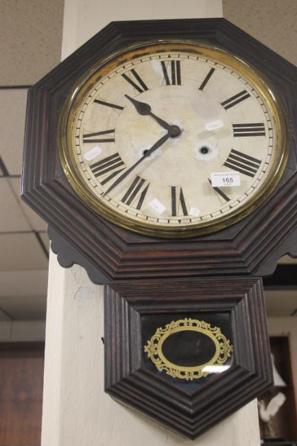 AN ANTIQUE DROP DIAL WALLCLOCK