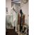 A WHITE METAL COAT RACK WITH TWO LEATHER COATS