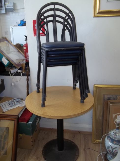 A ROUND CAFE TABLE AND 4 CHAIRS