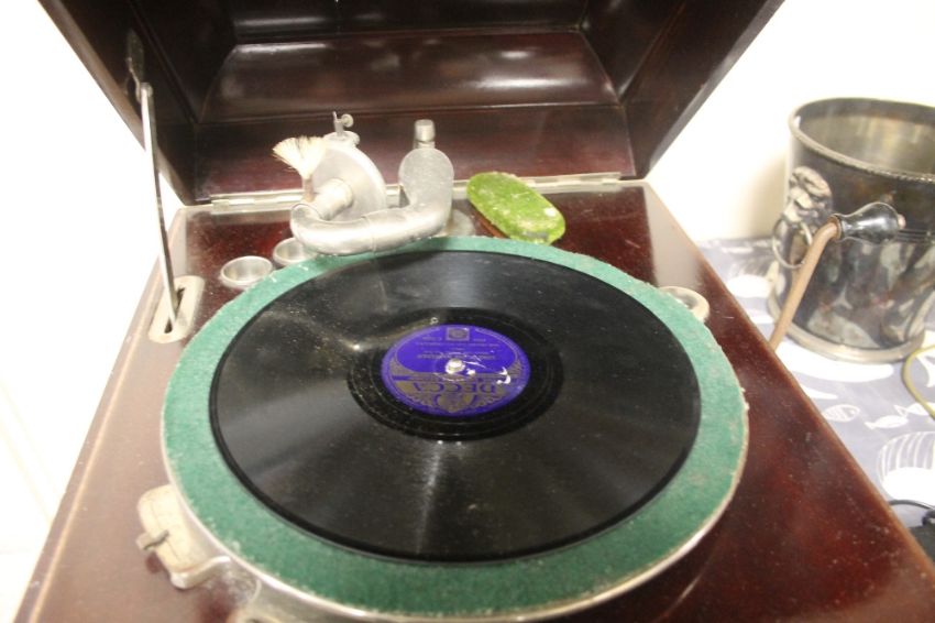 A CASED VINTAGE GRAMOPHONE