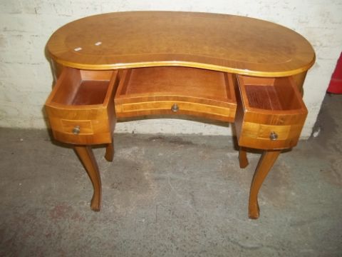 A SMALL KIDNEY SHAPED WRITING DESK WITH CROSS BANDED DETAIL
