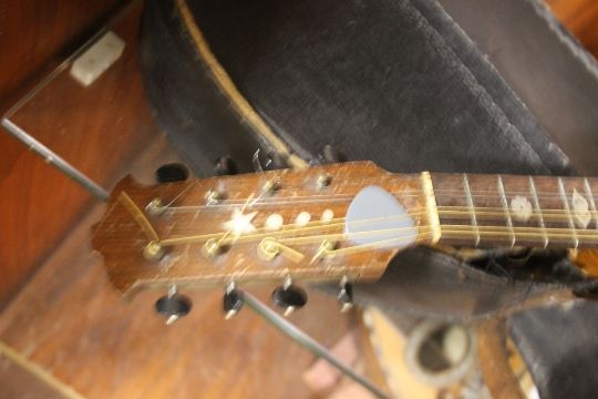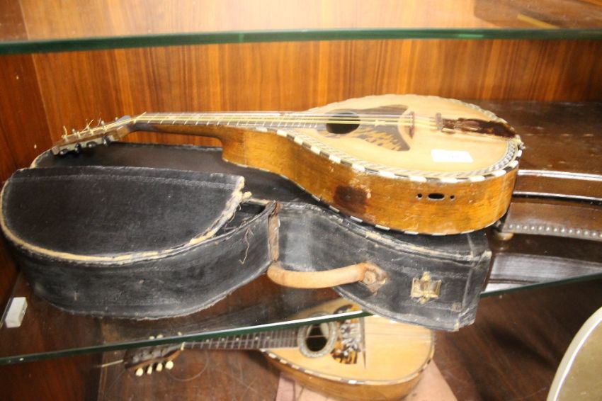 A VINTAGE MANDOLIN WITH TORTOISHELL AND MOTHER OF PEARL INLAY
