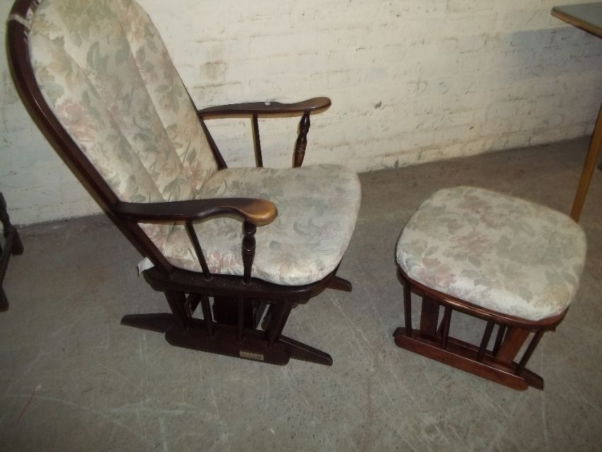A MODERN ROCKING CHAIR AND A MATCHING STOOL