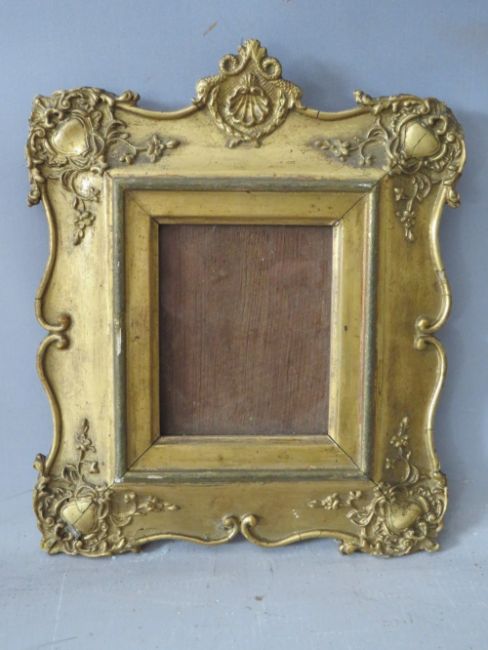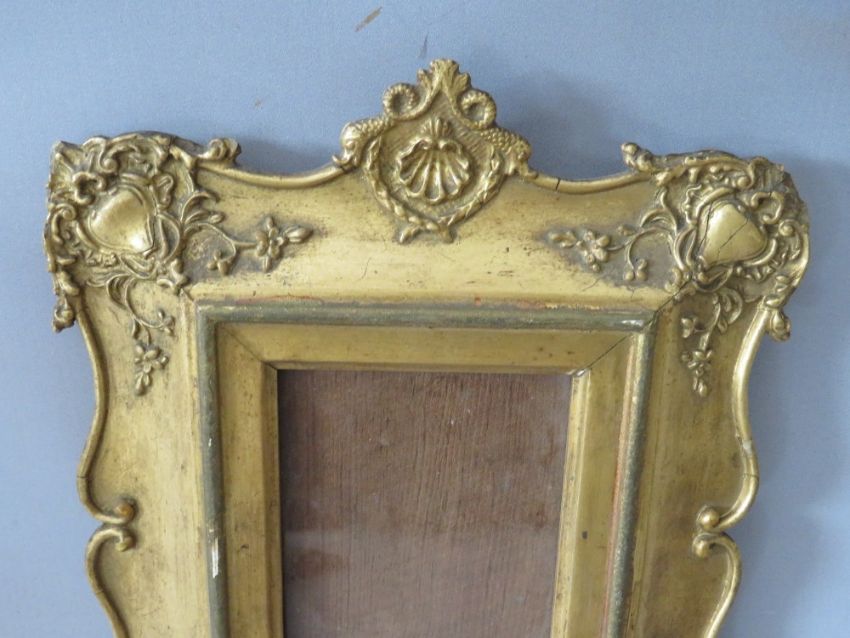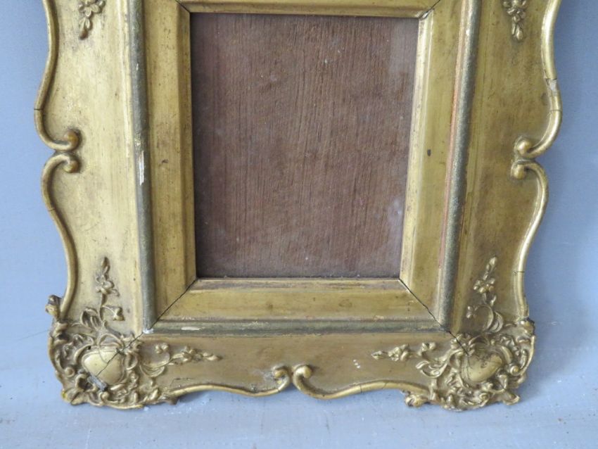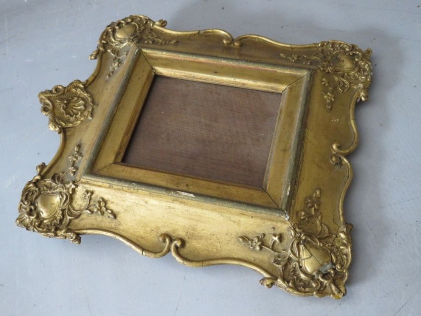 A 19TH CENTURY DECORATIVE GILT MINIATURE FRAME, glazed, frame W 7 cm, rebate 13.5 x 11.5 cm