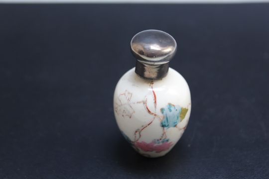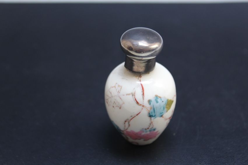 A SMALL PORCELAIN SCENT BOTTLE, H 5.5 cm
