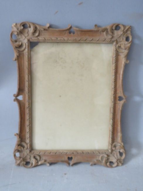 A LATE 19TH / EARLY 20TH SMALL DECORATIVE CARVED WOODEN FRAME, glazed, frame W 3 cm, rebate 21 x 15 cm