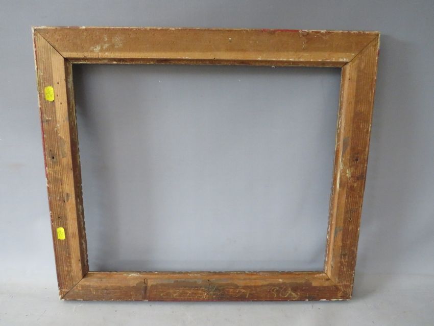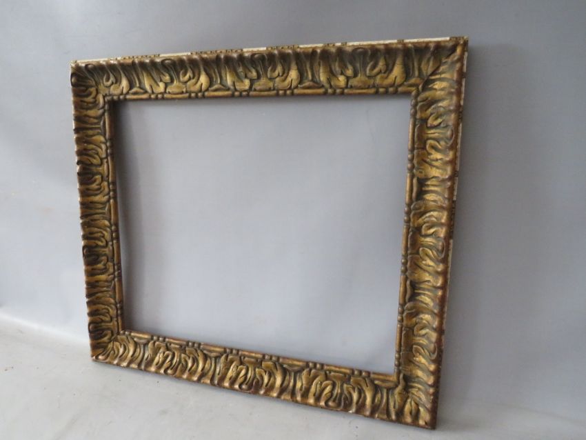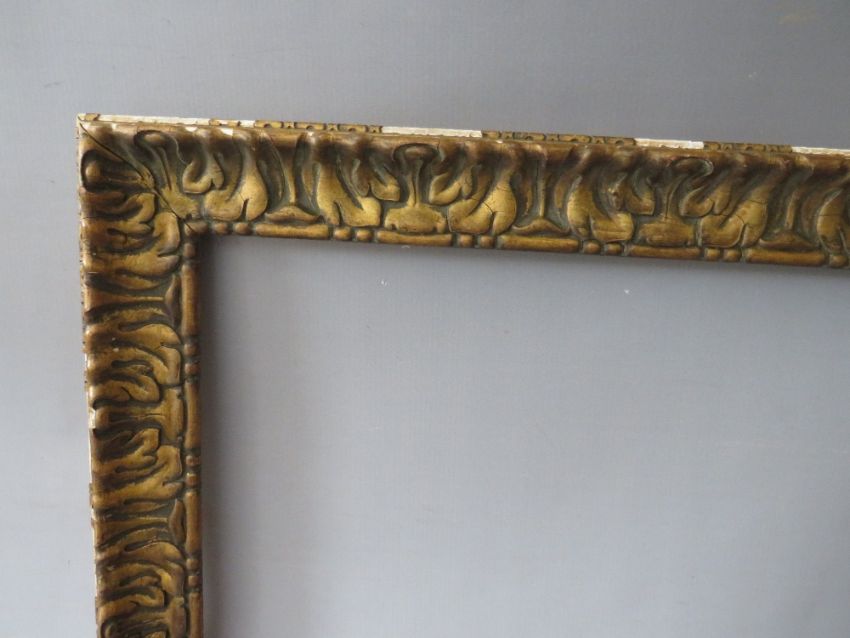 A 19TH CENTURY GOLD FRAME WITH LEAF DESIGN, frame W 6 cm, rebate 49 x 41 cm