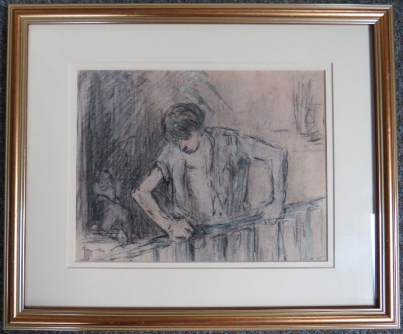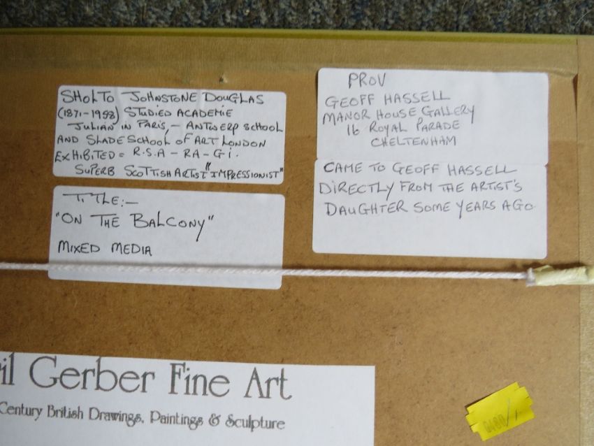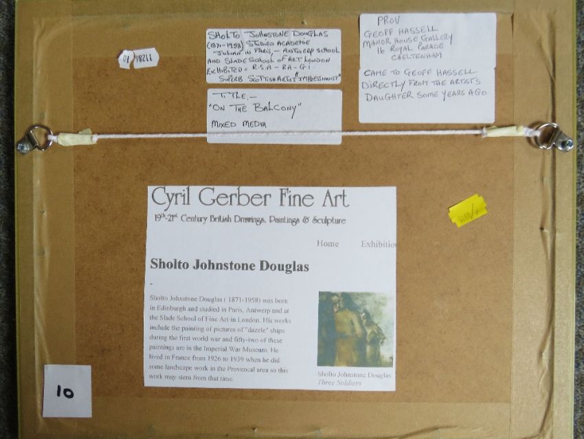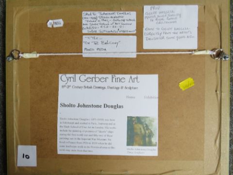 SHOLTO JOHNSTONE DOUGLAS (1871-1958) 'On the Balcony', mixed media study, titled verso, framed and glazed, 18 x 24 cm