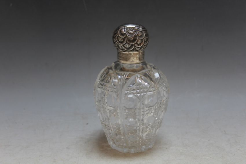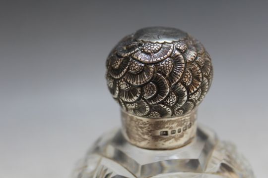 A HALLMARKED SILVER TOPPED SCENT BOTTLE - LONDON 1889, H 14 cm