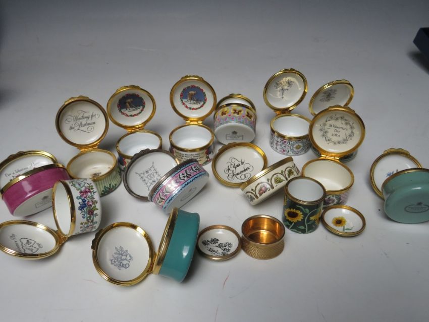 A COLLECTION OF MAINLY HALCYON DAYS ENAMEL PILL BOXES, examples to include 'Sunflowers', 'With all My Love', 'May The Best Of Your Past Be The Worst Of Your Future', 'A Gift of Love', 'For A Lifetime Of Love - Thank You', 'A Special Thanks You', Christmas 1980 etc. (15)