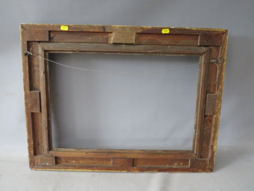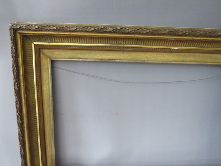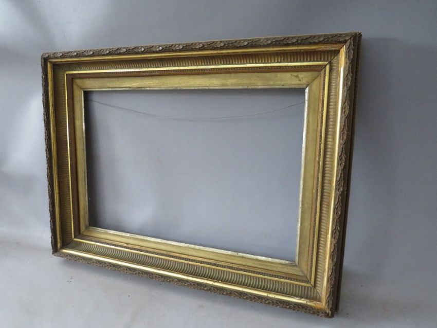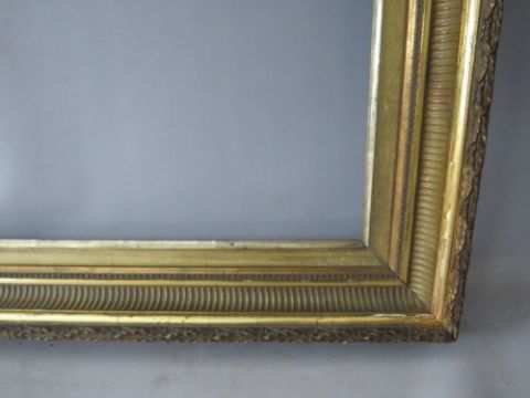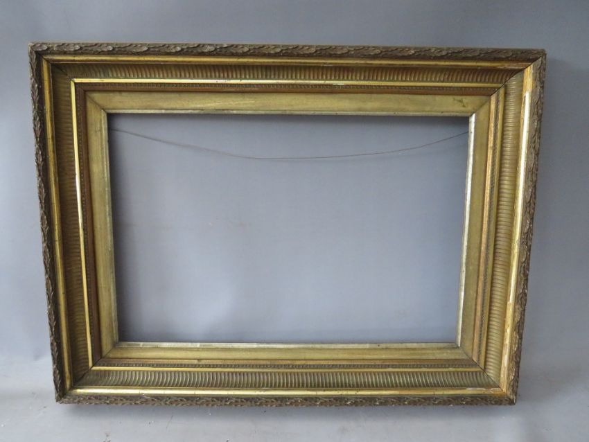 A 19TH CENTURY GOLD FRAME, with reeded inner and acanthus leaf design to outer edge, with gold slip, frame W 6.5 cm, slip rebate 36 x 54 cm, frame rebate 41 x 59 cm