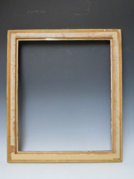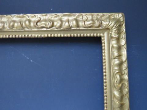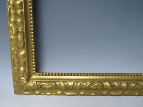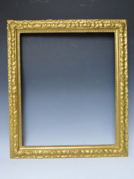 A LATE 19TH / EARLY 20TH CENTURY DECORATIVE GOLD FRAME, with bead design to inner edge and plant design to outer edge, frame W 6 cm, rebate 55.5 x 46.5 cm