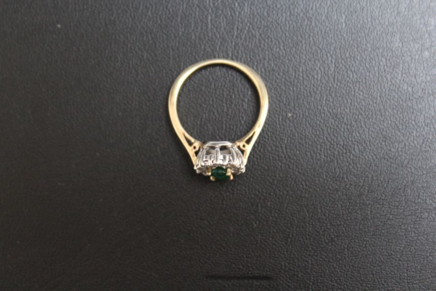 A HALLMARKED 9 CARAT GOLD EMERALD AND DIAMOND RING, approx weight 3.4g, ring size M