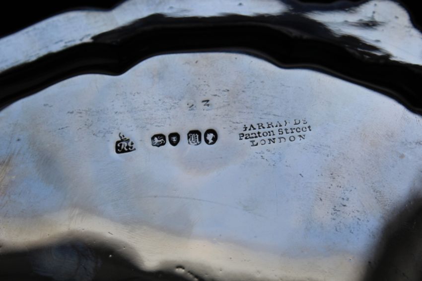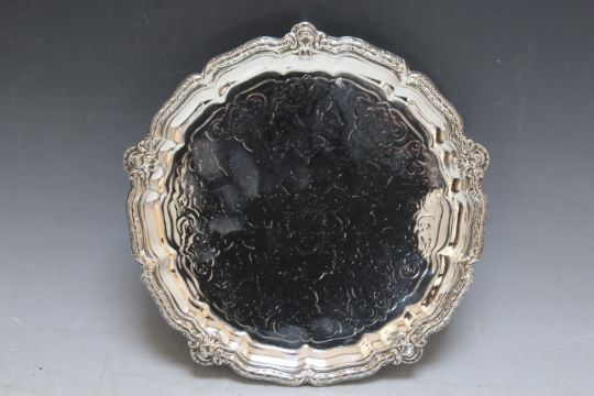 A HALLMARKED SILVER SALVER BY GARRARDS - LONDON 1843, with additional Garrards stamp, approx weight 530g, Dia 22 cm