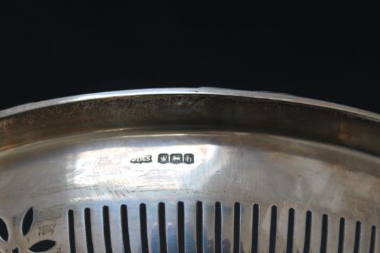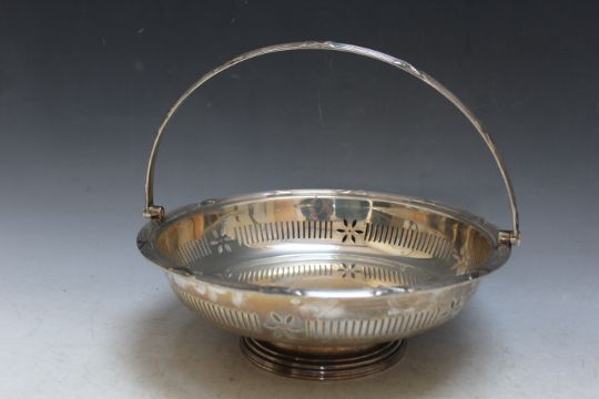 A HEAVY HALLMARKED SILVER PIERCED GALLERY SWING HANDLED BASKET BY JAMES DIXON & SONS - SHEFFIELD 1919, approx weight 1200g, Dia 28 cm