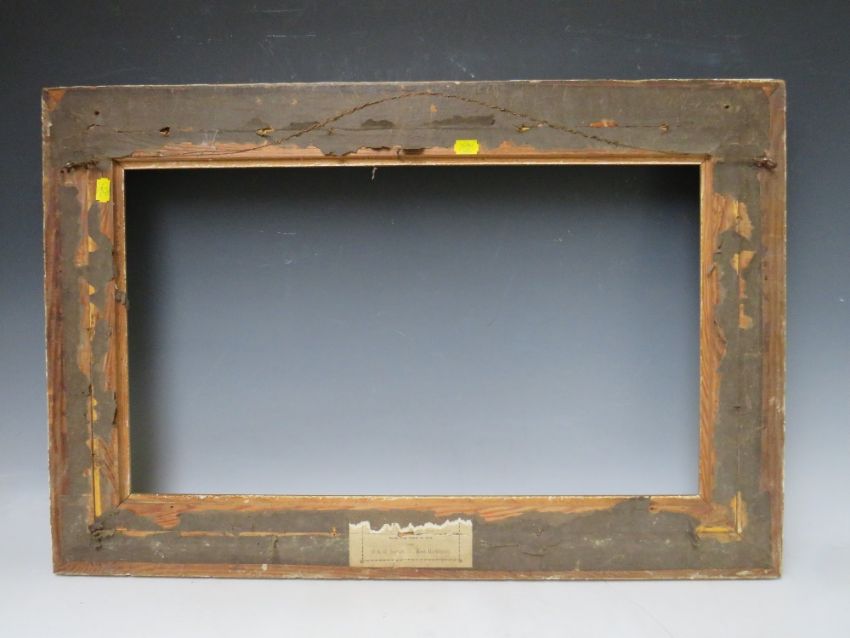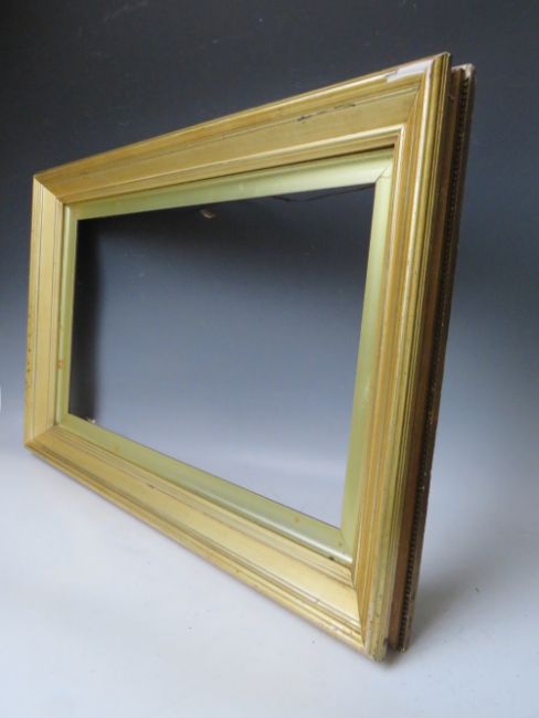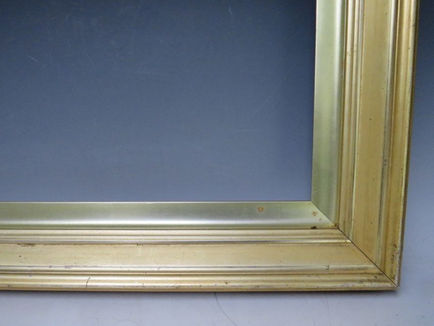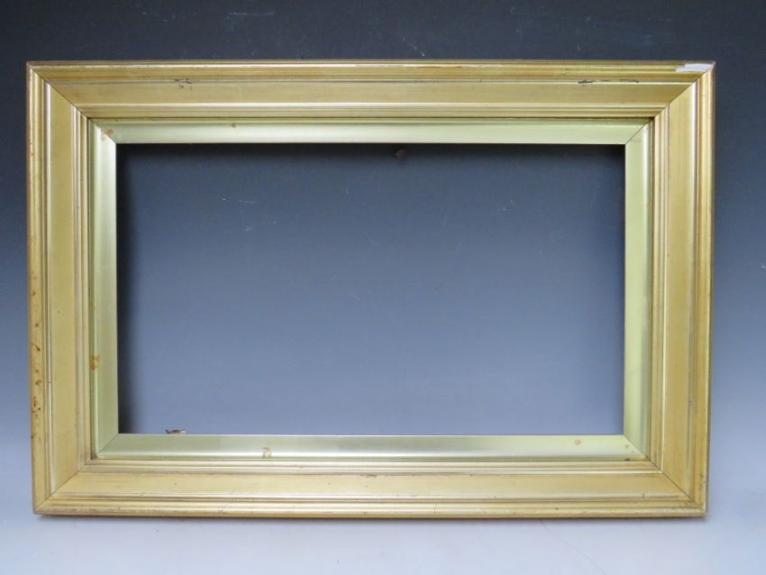 A 19TH CENTURY PLAIN GOLD FRAME WITH GOLD SLIP, frame W 6 cm, slip rebate 35 x 61 cm, frame rebate 41 x 67 cm
