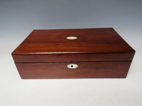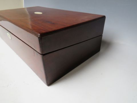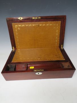 A 19TH CENTURY MAHOGANY WRITING SLOPE, W 40 cm