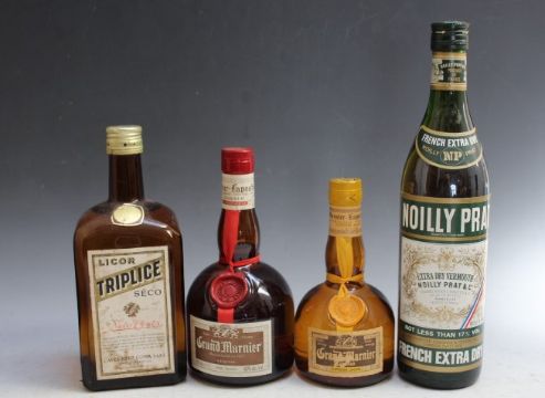 4 BOTTLES OF ASSORTED LIQUEURS ETC CONSISTING OF 1 BOTTLE OF TRIPLICE SECO, 1 Grand Marnier 500ml bottle, 1 Grand Marnier 'Cordon Jaune' 35cl bottle and 1 bottle of Noilly Prat