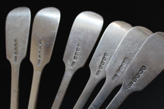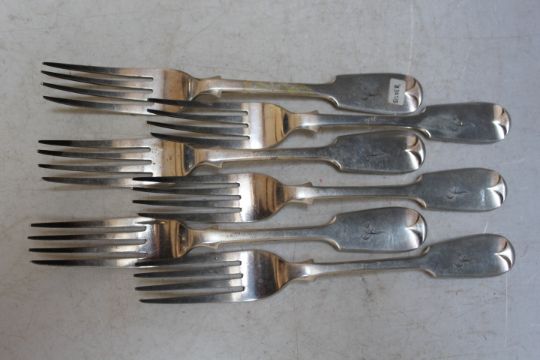 A SET OF SIX HALLMARKED SILVER FIDDLE PATTERN FORKS BY WILLIAM RAWLINGS SOBEY - EXETER 1848, approx weight 440g