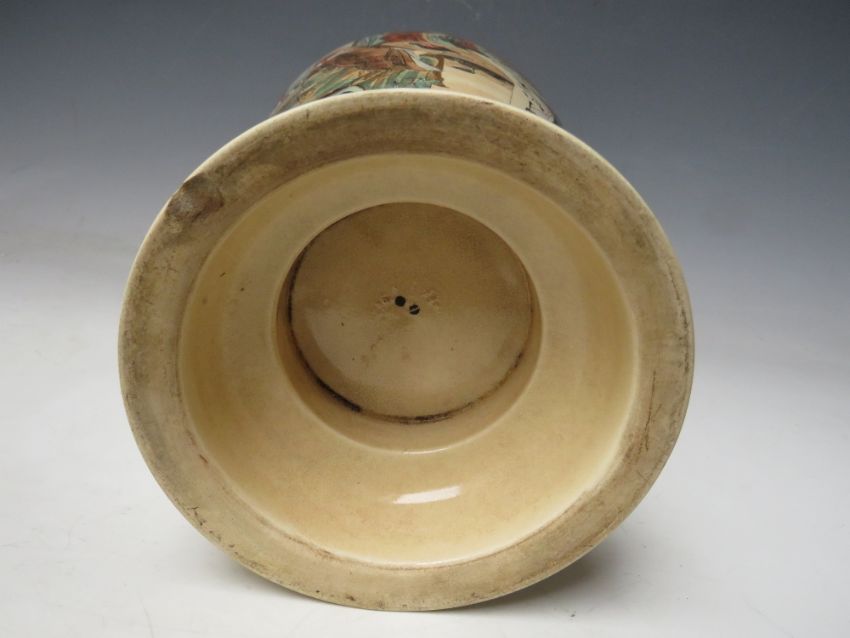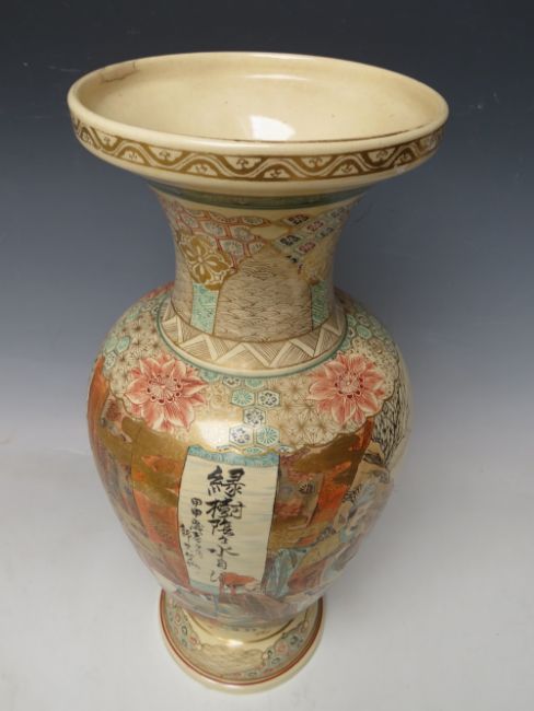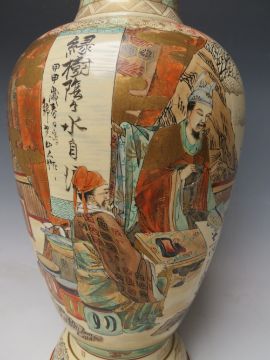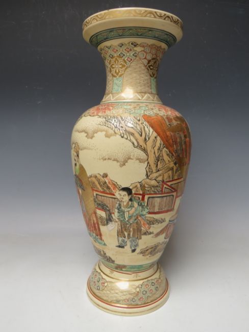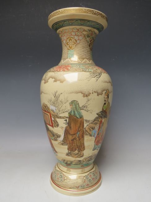 AN ORIENTAL SATSUMA BALUSTER VASE DECORATED WITH FIGURES IN A STYLISED LANDSCAPE, H