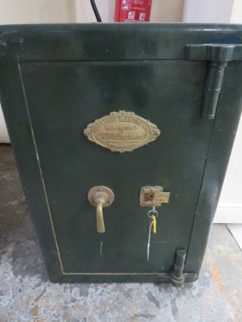 A LARGE HEAVY CAST SAFE BY 'G.H.WILLINGHAM & Co - BIRMINGHAM', H 76 cm, W 51 cm, D 53 cm, with key