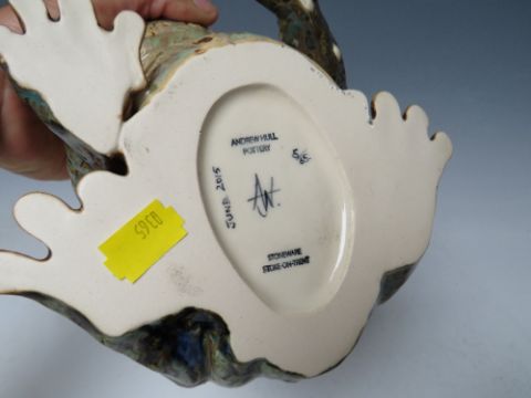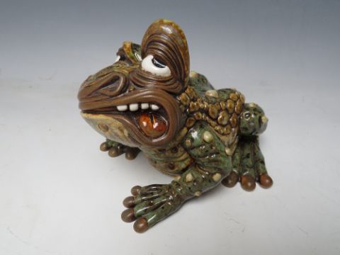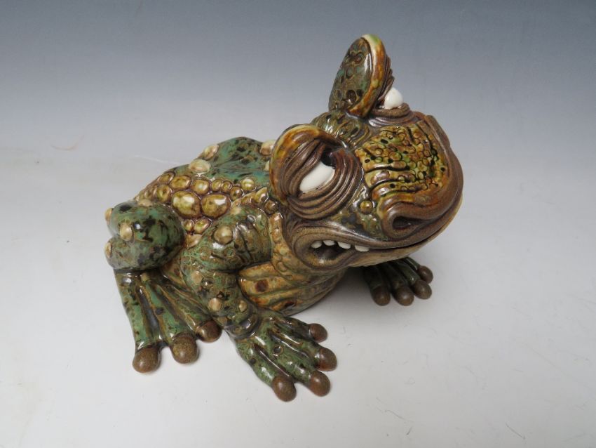 A BURSLEM POTTERY CONTEMPORARY STONEWARE GROTESQUE TOAD, designed by Andrew Hull, No 5/65, with original box, W 16 cm