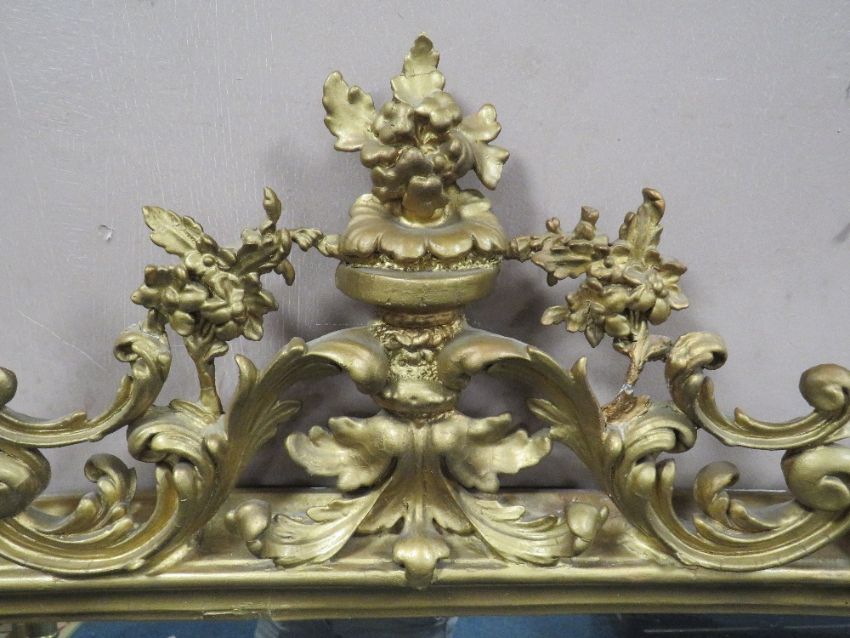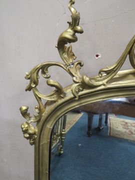 A LARGE 19TH CENTURY GILT OVERMANTLE MIRROR, with carved fretwork detail, H 153 cm, W 155 cm