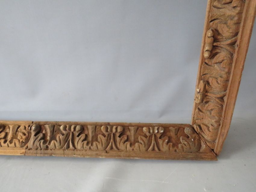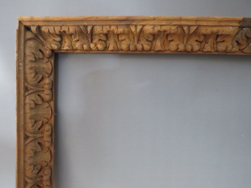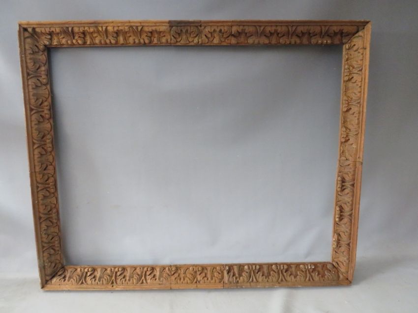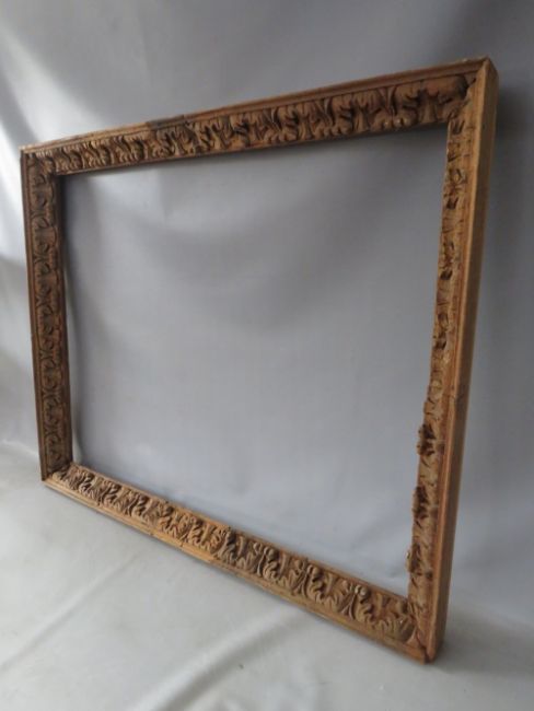 A LATE 18TH / EARLY 19TH CENTURY CARVED WOODEN DECORATIVE FRAME, frame W 6 cm, rebate 98 x 77 cm