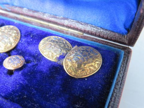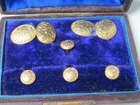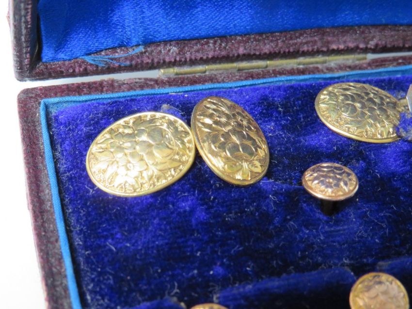 A CASED SET OF 9CT GOLD CUFFLINKS AND COLLAR STUDS, approximate combined weight 6.4 g