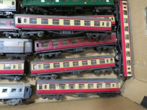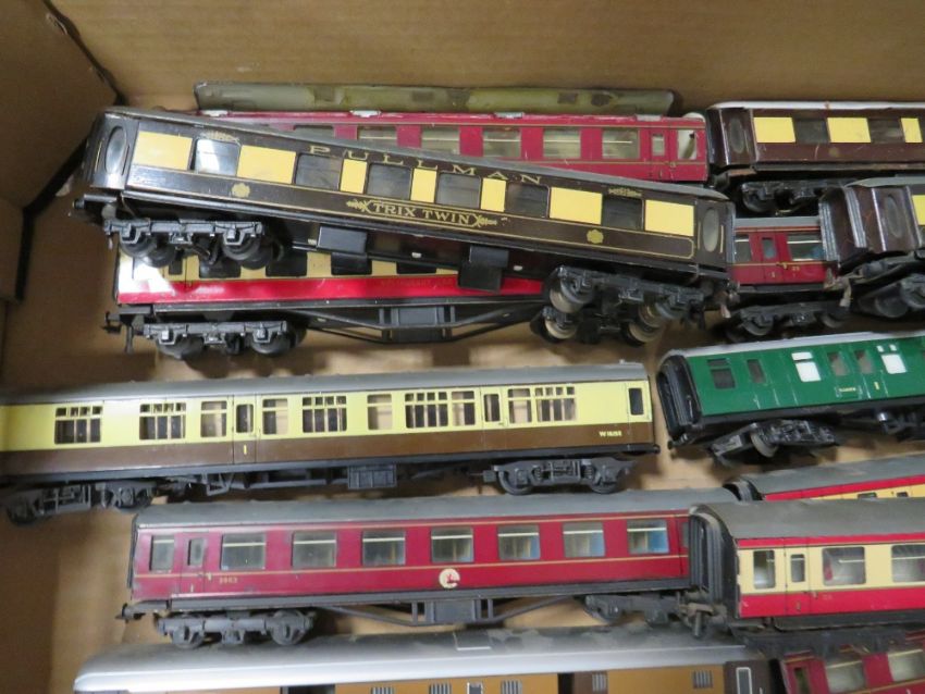 A SELECTION OF HORNBY, HORNBY DUBLO AND TRIX MODEL RAILWAY COACHES
