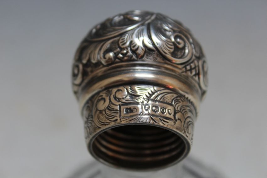 A HALLMARKED SILVER TOPPED SCENT BOTTLE - BIRMINGHAM 1889, H 12.5 cm