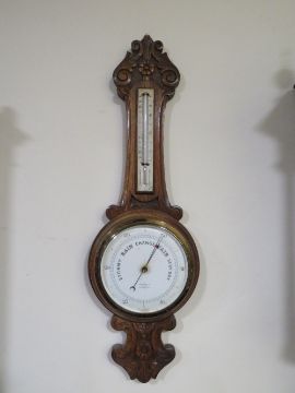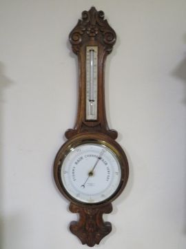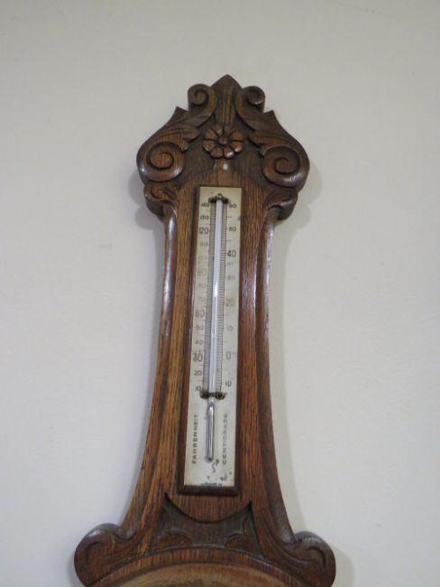 AN EARLY 20TH CENTURY CARVED OAK BAROMETER, by 'Ben Franks Ltd.', H 82 cm