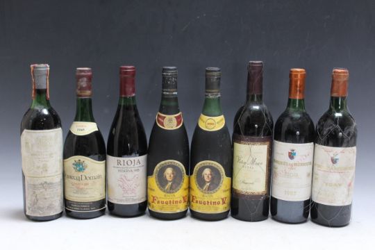 8 BOTTLES OF VINTAGE RIOJA TO INCLUDE 1 BOTTLE OF DOMECQ DOMAIN RESERVA 1981 - TOP SHOULDER, 1 bottle of Marques de Riscal 1982 and 1 bottle of Marques De Murriete YGAY 1983