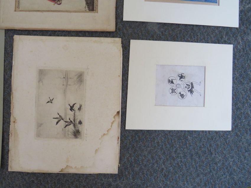 A FOLDER OF TWELVE ASSORTED MIXED MEDIA TO INCLUDE JOAN MIRO (1893-1983), various examples to include woodcuts, engravings etc...
